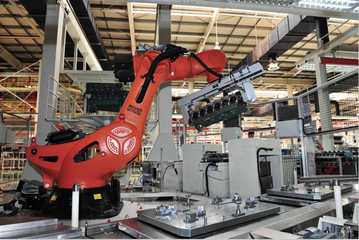 在錫柴重機部,德國GROB機床、瑞士ABB機器人、美國GORBEL等世界頂尖設備隨處可見,這些設備集柔性化、集成化、自動化于一體。自動化總裝線有179個工位,其中,Robostar三軸機器人負責給氣缸套自動涂膠,保障氣缸套裝配的潤滑和質量,整線自動化率達28%。6DM機加線60道工序,自動化率更是高達78%。同時,在機加工生產線還配置了可對加工精度進行全數采集分析和實時控制的裝備,在裝配線配置了自動化擰緊、涂膠、輸送、裝配等設備的生產線,并配備了關鍵尺寸、扭矩、外觀、滲漏等復驗裝備。
