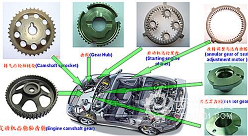 粉末冶金是一項能制造復雜形狀零件的,節材、省能、省工的機械結構零件制造技術,非常適合于大批量生產。因此,在美國與日本汽車用粉末冶金結構零件和汽車工亞是同步發展的。據報導,汽車中使用 的粉末冶金零件已超過1000種。