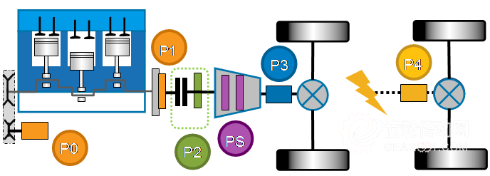 P2構型是電機置于發動機后、變速箱前的一種混合動力解決方案,適用于液力變矩器自動變速器、無極變速器(CVT)、雙離合自動變速器等多種條件。它可以實現變速箱的多檔位使用,實現內燃機驅動、混合動力驅動及純電動驅動的各種工況。整個系統非常安全可靠,可以實現多次耐久的啟動功能。P2系統通過模塊化和共享化的構建實現成本優勢,同時可以集成不同種類的電機可以是低壓48V的、也可以是高壓的包括應用于深混和插電式混動,性價比非常高。
