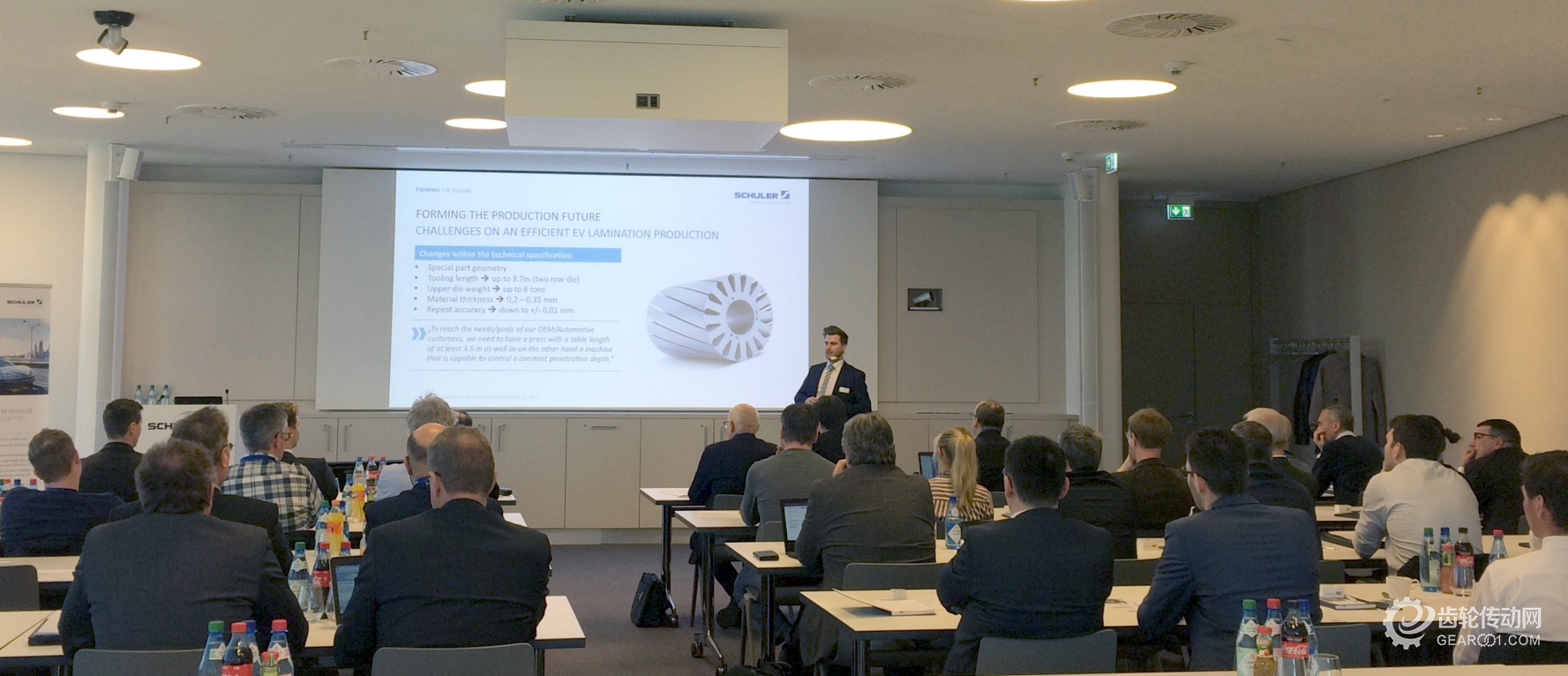舒勒技術日活動的參與者超過了 50 人。舒勒的 Simon Schmidt先生表示,電動汽車現在發展迅猛,汽車制造商紛紛加碼電動汽車產業。為了獲得更高的電動機效率,電動機沖片的幾何形狀變得越來越復雜,因此加工所需的模具長度也變得越來越長:“使用雙排模具進行加工是目前十分先進的技術。舒勒最新的高速沖 Smartline EV 3.8 工作臺長度從 2.7 米增加至 3.7 米,能夠加工最寬 630 mm 的帶料。”