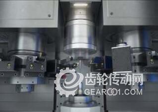 · 在生產線起始處,堆垛機械手將毛坯件放置在立式車床VTC 100-4的輸送帶上,之后由機床的工件機械手將工件運送到加工區內。一次裝夾便可以完成渦輪軸的預車,通過四軸加工確保縮短主加工時間。機床為倒立式設計結構,從而使切屑能自然掉落,可避免切屑堆積。