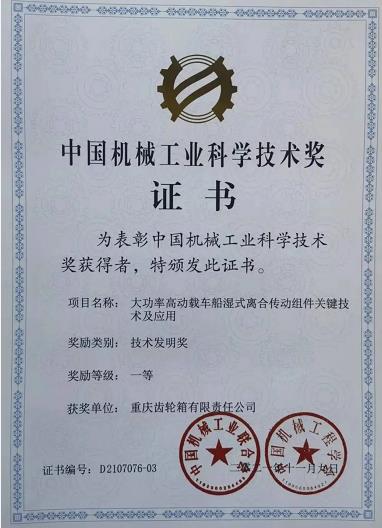 近日,中國機械工業(yè)聯(lián)合會公布2021年度中國機械工業(yè)科學技術獎獲獎名單,中國船舶重齒公司參與完成的“大功率高動載車船濕式離合傳動組件關鍵技術及應用”項目榮獲中國機械工業(yè)科學技術獎技術發(fā)明類一等獎,在全國僅十一位一等獎中斬獲一席。
