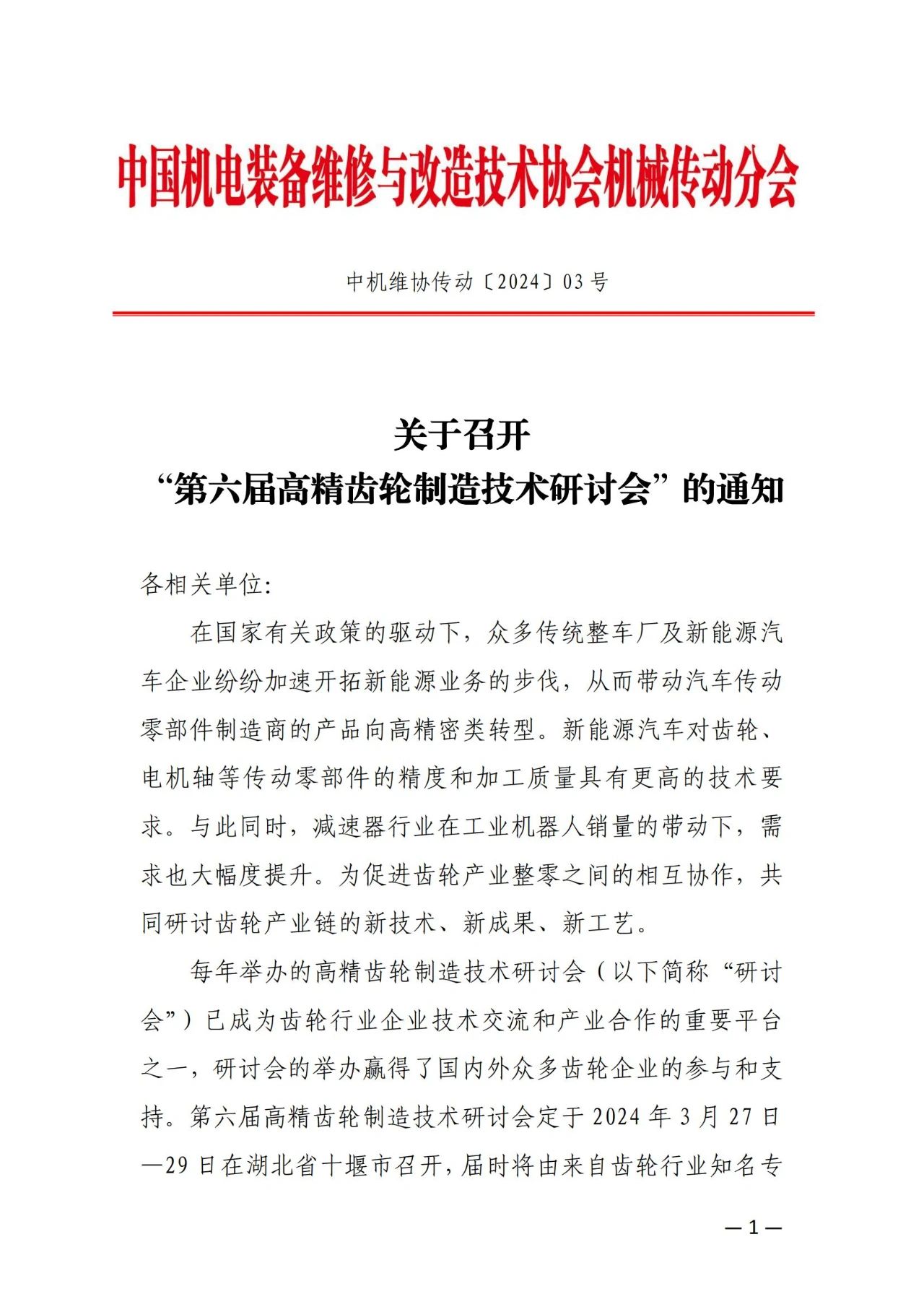 關(guān)于舉辦“第六屆高精齒輪制造技術(shù)研討會的通知”