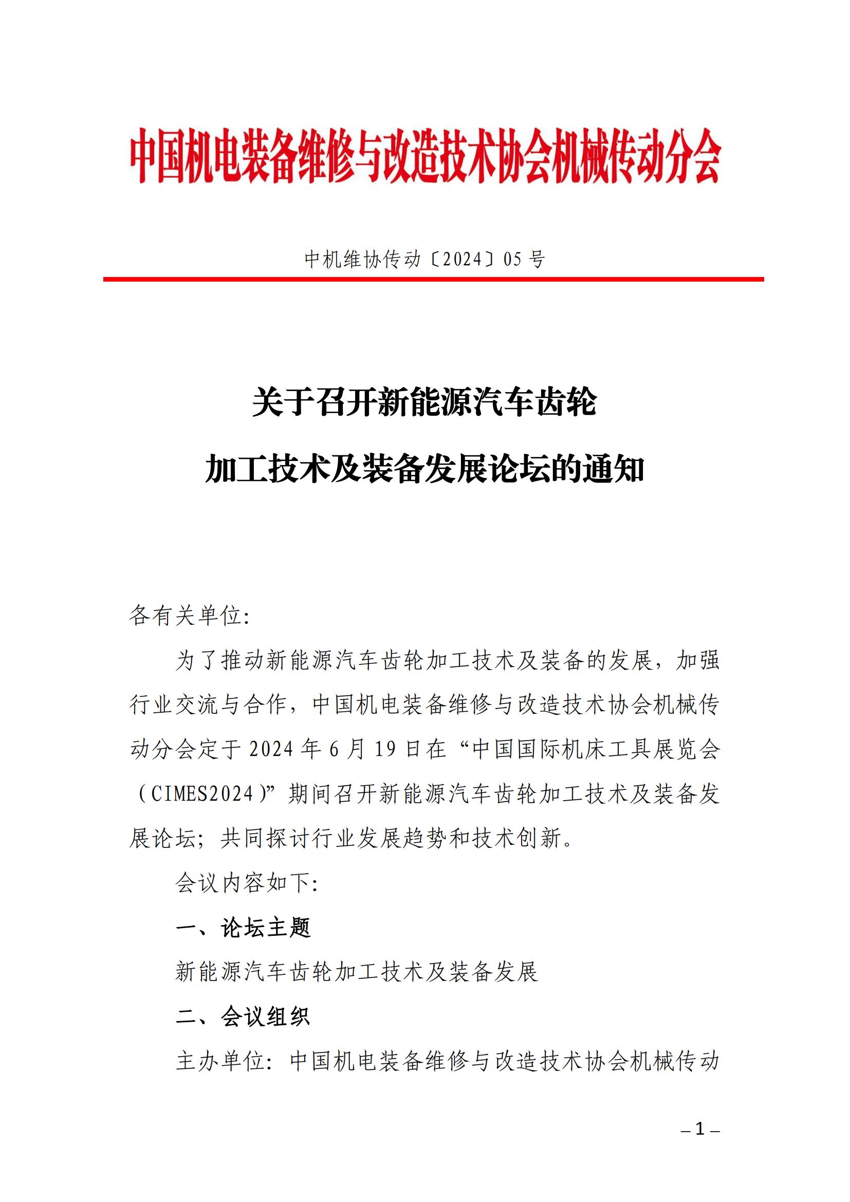 為了推動新能源汽車齒輪加工技術及裝備的發展,加強行業交流與合作,中國機電裝備維修與改造技術協會機械傳動分會定于 2024 年 6 月 19 日在“中國國際機床工具展覽會(CIMES2024)”期間召開新能源汽車齒輪加工技術及裝備發展論壇;共同探討行業發展趨勢和技術創新。