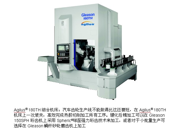 Gleason公司推出的Agilus®機(jī)床現(xiàn)在已經(jīng)取得了巨大的發(fā)展,該機(jī)床首次可以在一臺(tái)齒輪加工機(jī)床上直接完成更多的加工工序。在一次裝夾下除了可倒角和去毛刺外,還可完成全部的車削、鉆削、銑削和滾齒加工。該機(jī)床可以加工所有軸類和盤狀圓柱齒輪,其最大加工直徑可達(dá)180mm,最大加工長度達(dá)500mm。