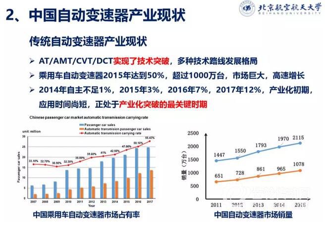 第二,目前,乘用車自動變速器市場呈高速增長,有代表性的數據是2015年達到50%市場份額,超過1000萬臺,市場巨大。