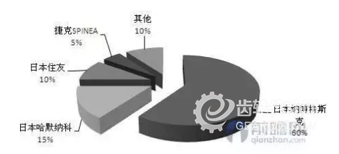 工業(yè)機(jī)器人市場(chǎng)的發(fā)展帶來(lái)了機(jī)器人減速機(jī)市場(chǎng)需求的增長(zhǎng),但從全球的市場(chǎng)競(jìng)爭(zhēng)格局來(lái)看,日本企業(yè)把控了80%以上的市場(chǎng)份額,可謂是機(jī)器人減速機(jī)領(lǐng)域的絕對(duì)霸主,而其中僅納博特斯克這一家公司的市場(chǎng)份額就已經(jīng)達(dá)到了60%左右。