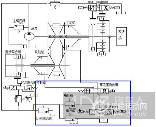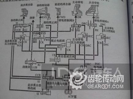 而圖中離合器減壓閥的作用,是將通過高壓調(diào)節(jié)閥(PH)的液壓油減壓后進(jìn)入前進(jìn)離合器以及倒檔離合器,或者經(jīng)過起步離合器壓力控制閥進(jìn)入起步離合器實(shí)現(xiàn)起步、前進(jìn)和倒檔。