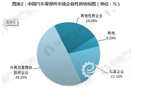 據不完全統計,零部件企業總數超過10000家(規模企業不到6000家)。我國汽車零部件制造企業中,私營企業和外資企業占有較大比重,分別為49.25%和22.20%。而股份制企業、國有企業占比相對較少。
