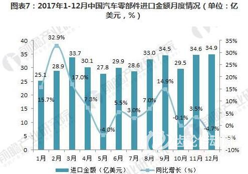 從月度汽車零部件進口金額同比增長變化情況來看,一季度各月同比增速均超過15%,為年內最高,5月、10月和12月均呈小幅下降,其他各月除9月外,增速均低于10%,表現不如一季度。