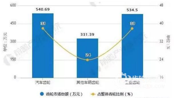 在我國龐大的齒輪市場中,車輛齒輪的市場份額達到 62%,工業(yè)齒輪占 38%,其中,汽車齒輪又占車輛齒輪的 62%,即占整體齒輪市場的 38%,其他車輛齒輪占整體齒輪市場的 24%。