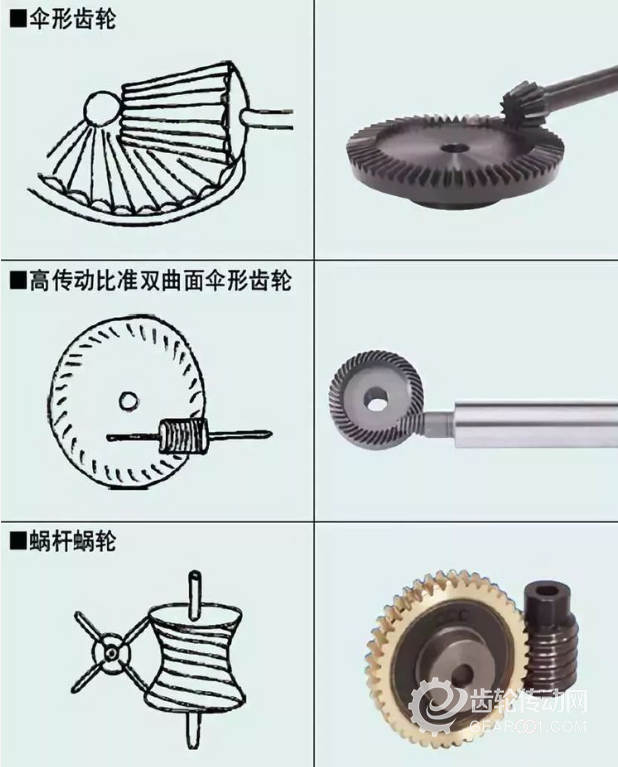 2)相交軸齒輪:有直齒錐齒輪、弧齒錐齒輪、零度齒錐齒輪等。