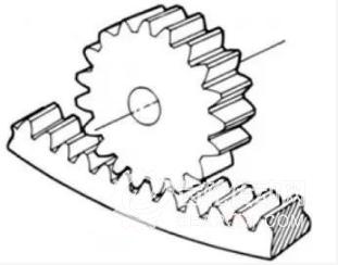 與正齒輪嚙合的直線齒條狀齒輪。可以看成是正齒輪的節(jié)圓直徑變成無限大時的特殊情況。