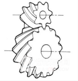 齒線為曲線,帶有螺旋角的錐齒輪。雖然與直齒錐齒輪相比,制作難度較大,但是作為高強(qiáng)度、低噪音的齒輪使用也很廣泛。