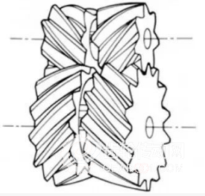 齒線為左旋及右旋的兩個斜齒齒輪組合而成的齒輪。有在軸向不產(chǎn)生推力的優(yōu)點。