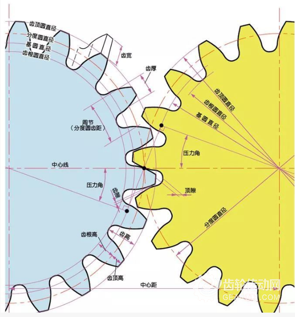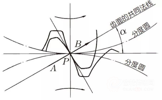 A齒在節(jié)點上推動B點。這個時候的推動力作用在A齒及B齒的共同法線上。也就是說,共同法線是力的作用方向,亦是承受壓力的方向,α則為壓力角。