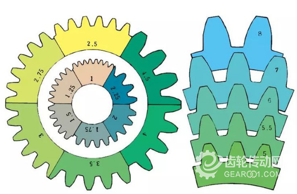 m1、m3、m8…被稱為模數(shù)1、模數(shù)3、模數(shù)8。模數(shù)是全世界通用的稱呼,使用符號m(模數(shù))和數(shù)字(毫米〉來表示輪齒的大小,數(shù)字越大,輪齒也越大。