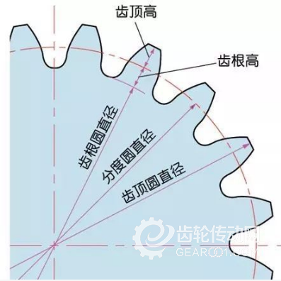 決定齒輪大小的參數(shù)是齒輪的分度圓直徑(d)。以分度圓為基準(zhǔn),才能定出齒距、齒厚、齒高、齒頂高、齒根高。