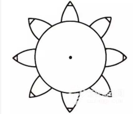 將圓筒8等分后,系上8根鉛筆,畫出8條漸開曲線。然后,將線向相反方向纏繞,按同樣方法畫出8條曲線,這就是以漸開曲線作為齒形,齒數(shù)為8的齒輪。