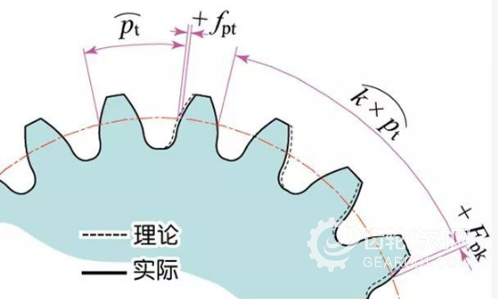 單齒距偏差(fpt)實際齒距與理論齒距的差。