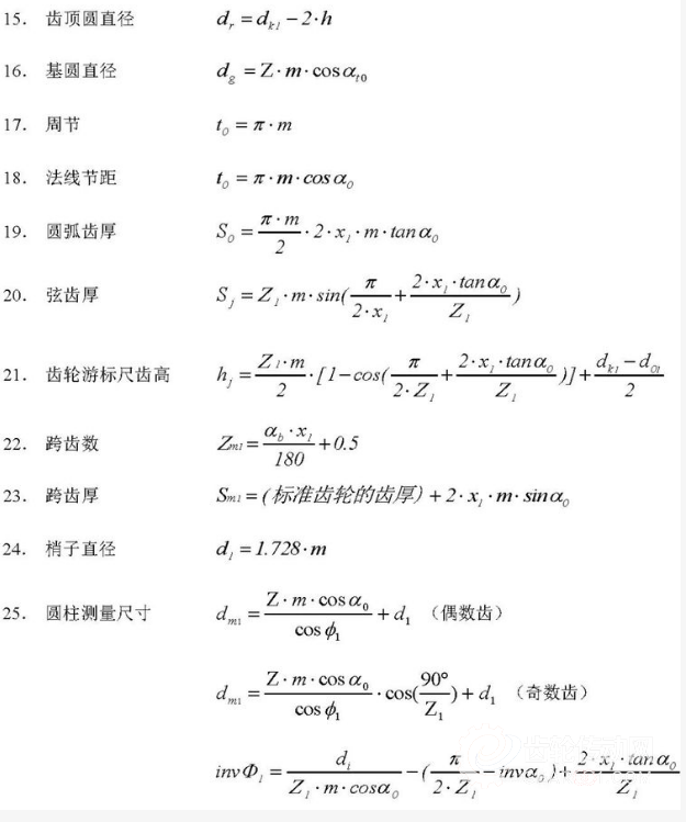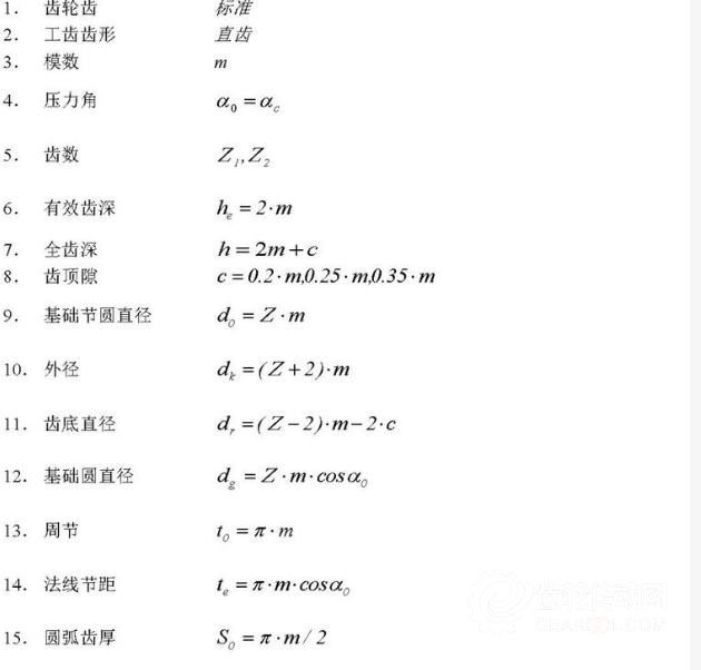 模數(shù)(m)、壓力角(α)再加上齒數(shù)(z)是齒輪的三大基本參數(shù),以此參數(shù)為基礎(chǔ)計算齒輪各部位尺寸。