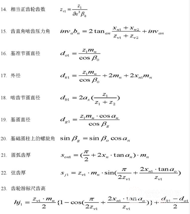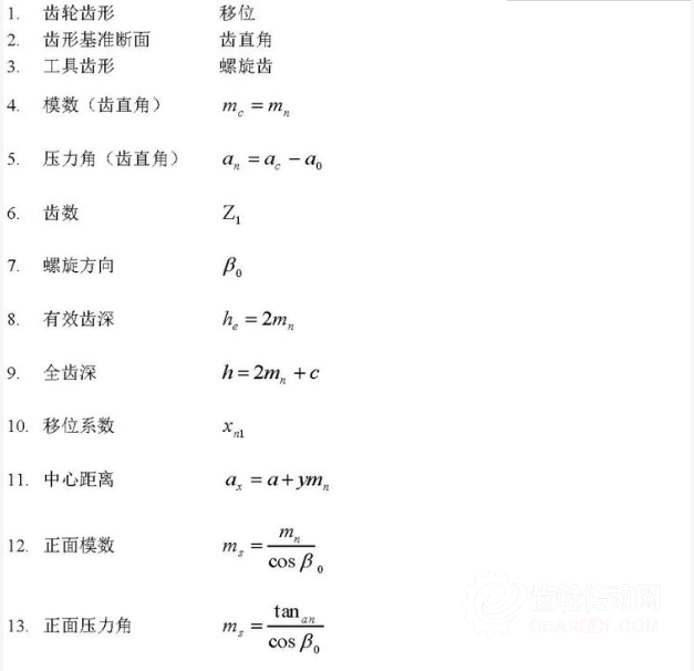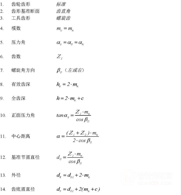 標(biāo)準(zhǔn)螺旋齒的計算公式(齒直角方式)(小齒輪①,大齒輪②)