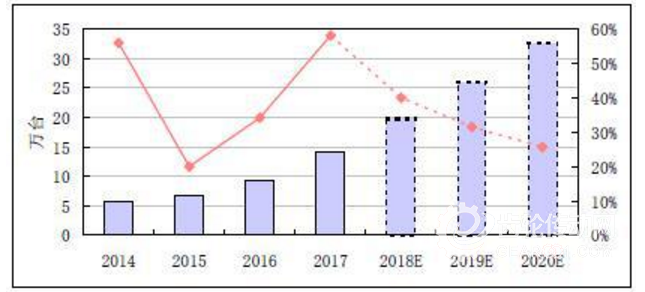 2018——2020年我國工業(yè)機(jī)器人銷售量及同比增速預(yù)測