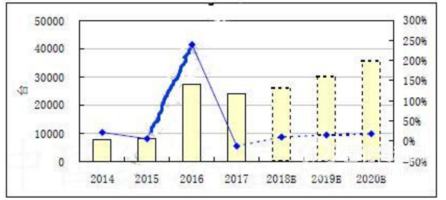 展望4季度,國內(nèi)工業(yè)生產(chǎn)有望繼續(xù)保持穩(wěn)中有進(jìn)的發(fā)展趨勢,行業(yè)面臨的外部環(huán)境不會(huì)有明顯變化,工業(yè)機(jī)器人產(chǎn)量有望繼續(xù)小幅增長。初步預(yù)計(jì)2018年全年,工業(yè)機(jī)器人產(chǎn)量有望達(dá)到14.55萬套,同比增長11%左右。