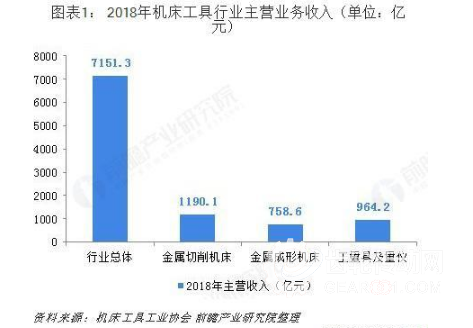 根據機床工具工業協會數據:2018年機床工具行業規上企業主營業務收入7151.3億元,同比增長8.3%。其中,金屬切削機床行業完成主營業務收入1190.1億元,同比增長3.3%。金屬成形機床行業完成主營業務收入758.6億元,同比增長10.0%。工量具及量儀行業完成主營業務收入964.2億元,同比增長9.6%。