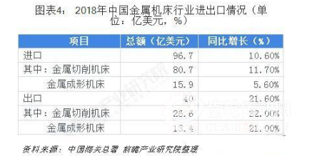 2018年金屬加工機床進口總額96.7億美元,同比增長10.6%。其中,金屬切削機床80.7億美元,同比增長11.7%,達到了2015年以來的年度最高值;金屬成形機床15.9億美元,同比增長5.6%,也達到了2016年以來的年度最高值。從增速看,金屬切削機床進口的增長快于金屬成形機床進口的增長。