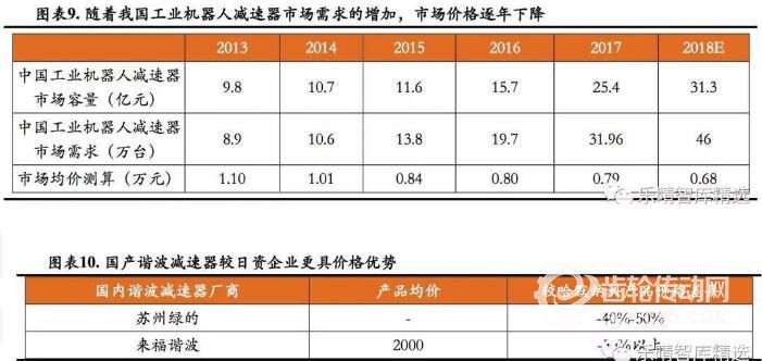 至2017年,我國工業機器人用減速器市場需求增至31.96萬臺,市場容量增至25.4億元,市場均價約為0.79萬元。