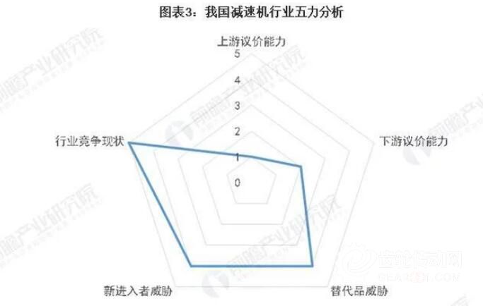 運用波特的"五力"模型,對減速機行業(yè)的競爭狀況分析,得出如下結(jié)論:我國減速機行業(yè)對上游鋼材、銅材等行業(yè)具有較低的議價能力;對下游行業(yè)的議價能力整體較低,但針對需求少數(shù)高端減速機的下游行業(yè),減速機行業(yè)具有較高的議價能力;由于減速機行業(yè)盈利水平較高,技術(shù)壁壘較低,存在一定的新進入者威脅;以及減速機行業(yè)的生產(chǎn)企業(yè)眾多,產(chǎn)品同質(zhì)化,市場競爭較為激烈。