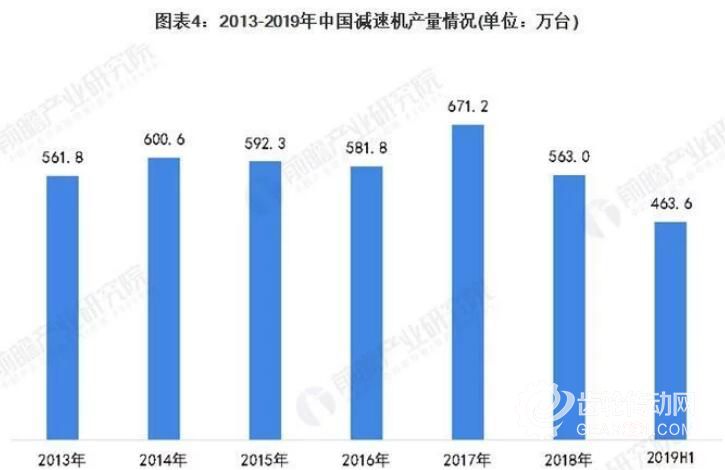 近年來,我國包括機械、建筑、電力、石化、建材、汽車、船舶等傳統(tǒng)用戶行業(yè)處于產(chǎn)能調(diào)整期,2018年,中國減速機產(chǎn)量為563.03萬臺,較2017年下降16.1%,2019年上半年,中國減速機產(chǎn)量有所回升,產(chǎn)量為463.59萬臺