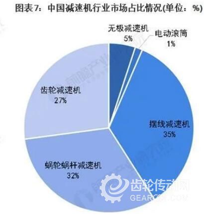 從市場占比來看,我國減變速機行業(yè)五大類產(chǎn)品中,擺線減速機的產(chǎn)量占比最高,為35%;其次是蝸輪蝸桿減速機,占比為32%;齒輪減速機位居第三,占比為27%。