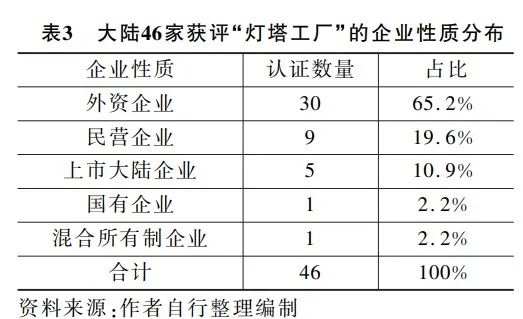 從企業(yè)屬性看,46家大陸企業(yè)的平均注冊資金為37億人民幣,基本為所在行業(yè)的大型頭部企業(yè);46家大陸企業(yè)平均成立年份為16.5年,其中2001年中國“入世”前成立的企業(yè)15家,占比26.1%,1988年成立的中信戴卡股份有限公司(生產(chǎn)鋁合金車輪)和廣州寶潔有限公司(生產(chǎn)日化產(chǎn)品)經(jīng)營時(shí)間最久。這說明我國傳統(tǒng)制造業(yè)轉(zhuǎn)型升級的空間巨大,對此應(yīng)該有堅(jiān)定的信心。