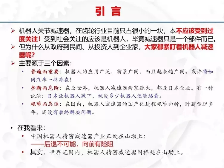 今天我講三個問題,首先做一個遠眺與近觀,看看山坳上的減速器;再講講我們所面臨的問題與對策;最后討論一下這個行業的創新與發展。