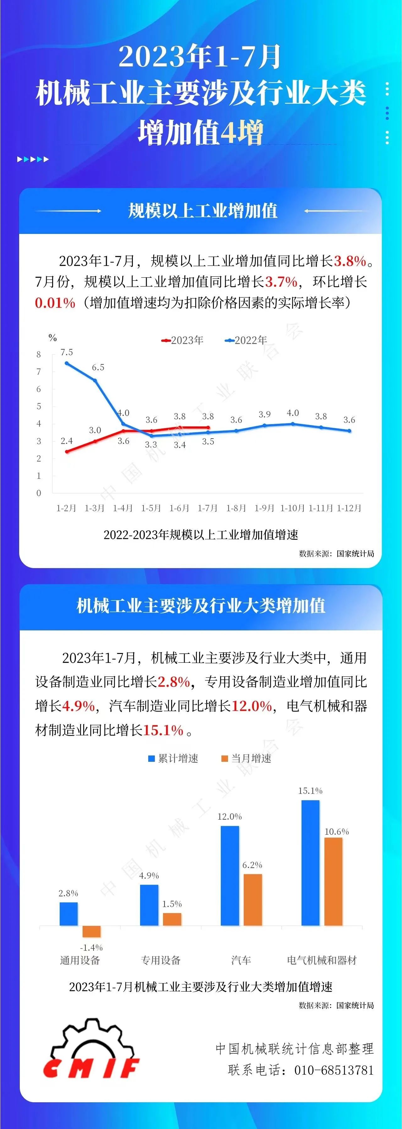 2023年1-7月機械工業主要涉及行業大類增加值4增