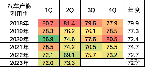 二季度,全國工業產能利用率為74.5%,比一季度上升0.2個百分點。汽車制造業為73.3%,弱于全國工業水平。