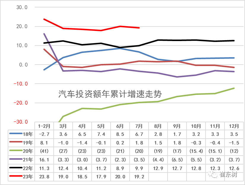 2023年1-7月汽車投資增長19.2%,回暖明顯,處于近6年的歷史最高位。新能源增長導致汽車行業投資低迷問題逐步改善。