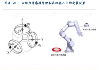 六維力測量維度高,可以安裝在傳統機器人底座或者末端位置。目前,六維力傳感器主要用于檢測、預防、控制、示教、測量、保護等場景,通常安裝在機器人的底座或者末端,可以提供應用過程中的力交互信息。隨著智能制造和機器人產業的發展,精度較高的六維力傳感器未來潛在市場空間大。