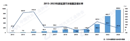 2023年,新能源汽車產(chǎn)銷累計(jì)完成958.7萬輛和949.5萬輛,同比分別增長35.8%和37.9%,市場占有率達(dá)到31.6%。在新能源汽車主要品種中,與上一年度相比,三大類新能源汽車品種產(chǎn)銷均呈明顯增長。
