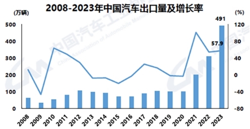 2023年,汽車出口再創(chuàng)新高,成為拉動(dòng)汽車產(chǎn)銷量增長的重要力量。汽車出口491萬輛,同比增長57.9%,出口對汽車總銷量增長的貢獻(xiàn)率達(dá)到55.7%。分車型看,乘用車出口414萬輛,同比增長63.7%;商用車出口77萬輛,同比增長32.2%。