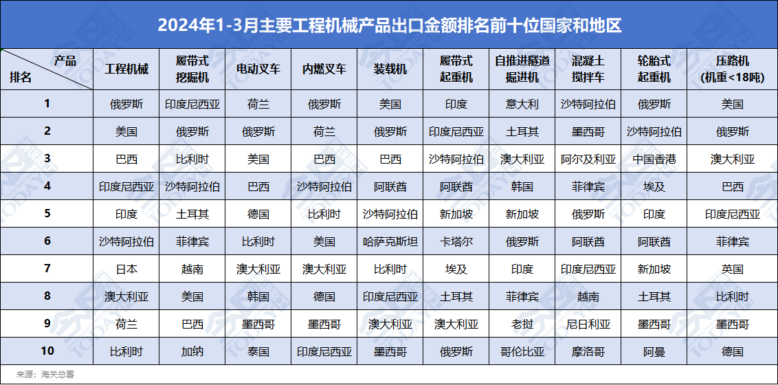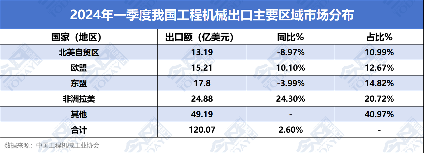 2024年一季度我國(guó)工程機(jī)械產(chǎn)品進(jìn)出口主要特點(diǎn):