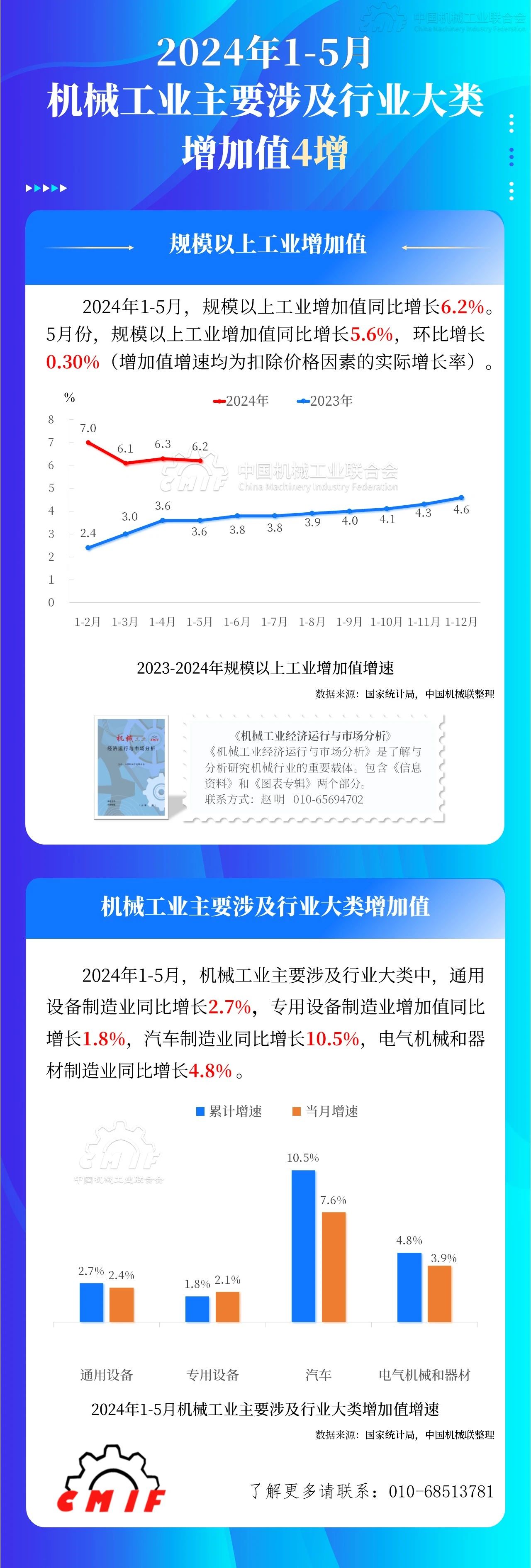 2024年1-5月機械工業(yè)主要涉及行業(yè)大類增加值4增