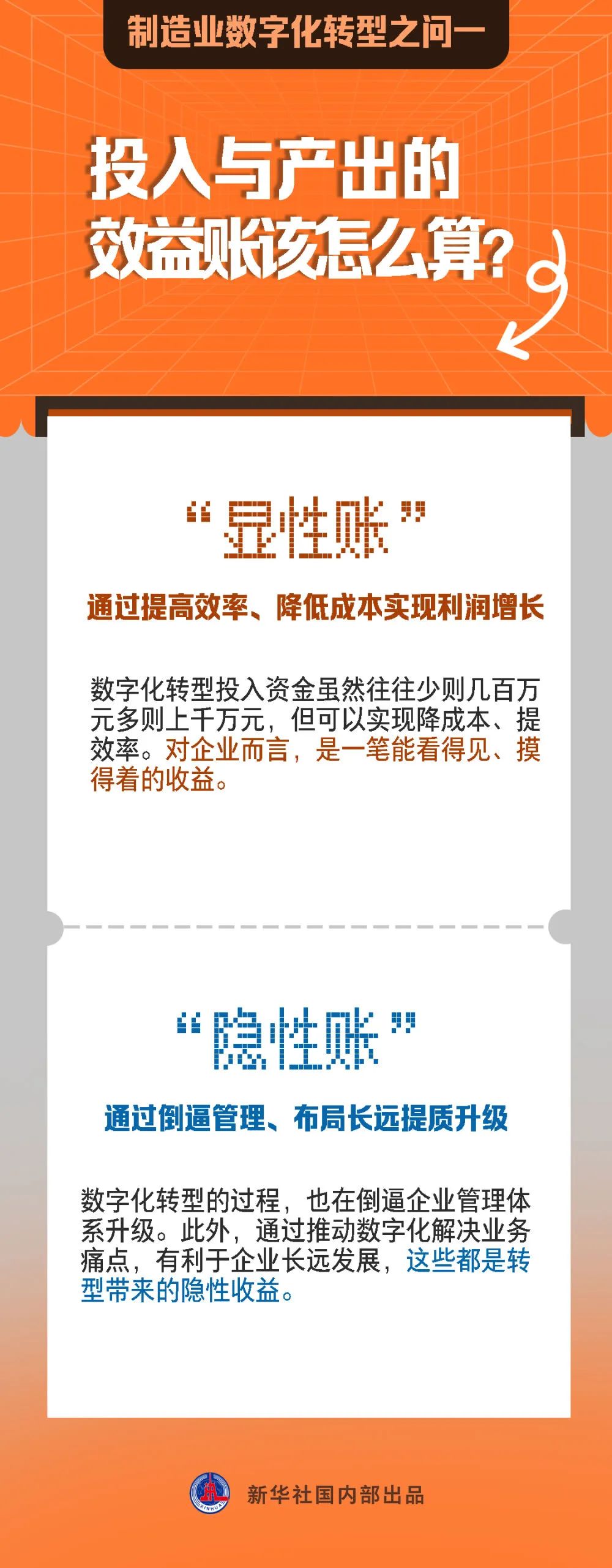 推動數字化轉型,企業雖然要投入幾百萬元乃至上千萬元資金,但可以實現降成本、提效率。對企業而言,是一筆能看得見、摸得著的收益。