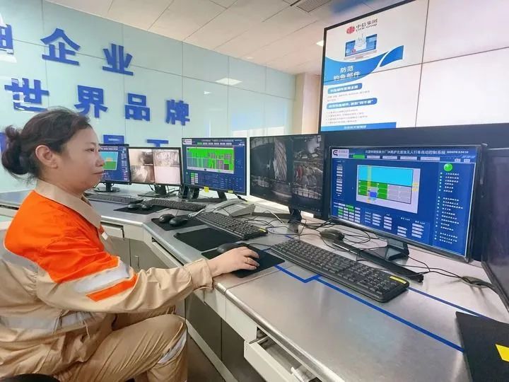 中信泰富特鋼集團興澄特鋼煉鐵分廠行車集中控制室,行車操作工周清在遠程操控行車。(受訪者供圖)