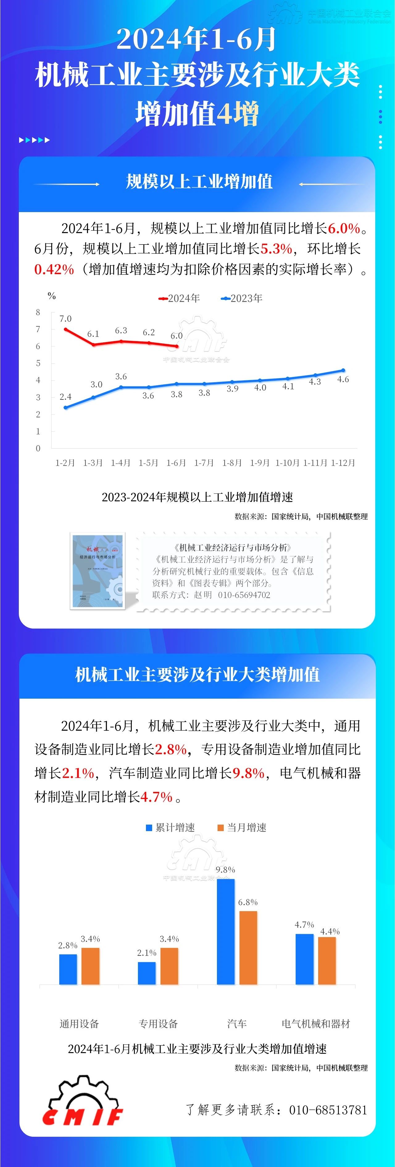 【行業數據】2024年1-6月機械工業主要涉及行業大類增加值4增