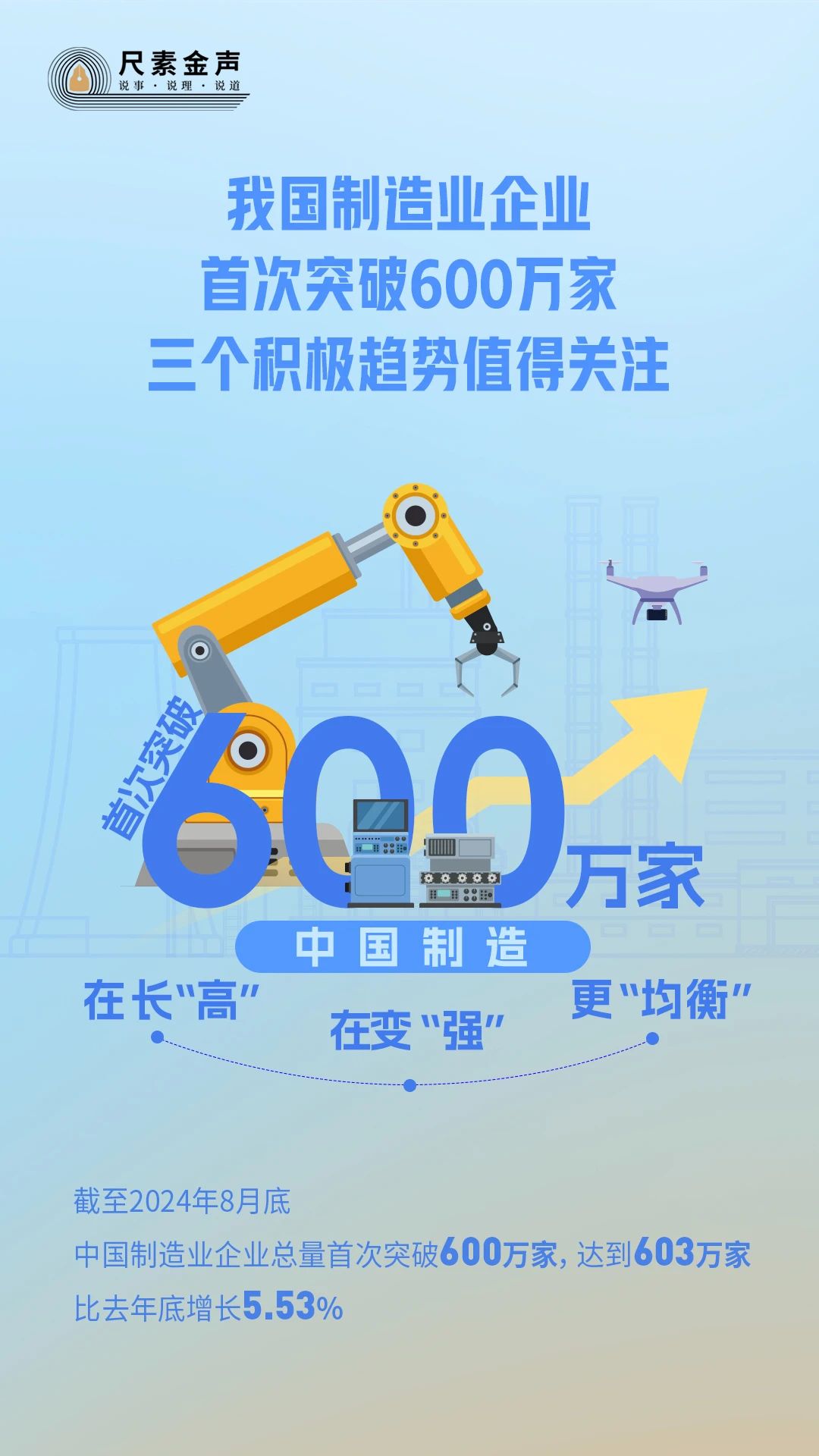 “均衡”體現(xiàn)在區(qū)域布局上。今年1至8月,中部地區(qū)新增制造業(yè)企業(yè)6.97萬家,與2023年底相比增長6.55%,與其他地區(qū)相比增幅最大;西部地區(qū)新增制造業(yè)企業(yè)3.76萬家,與2023年底相比增長5.23%;東北地區(qū)新增制造業(yè)企業(yè)0.99萬家,與2023年底相比增長3.87%,這表明,從區(qū)域分布看,中國制造朝著更加均衡的方向發(fā)展。