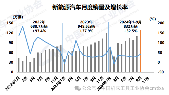 9月,新能源汽車延續(xù)快速增長態(tài)勢(shì),月度產(chǎn)銷創(chuàng)歷史新高。當(dāng)月,新能源汽車產(chǎn)銷分別完成130.7萬輛和128.7萬輛,環(huán)比分別增長19.7%和17%,同比分別增長48.8%和42.3%,新能源汽車新車銷量達(dá)到汽車新車總銷量的45.8%。