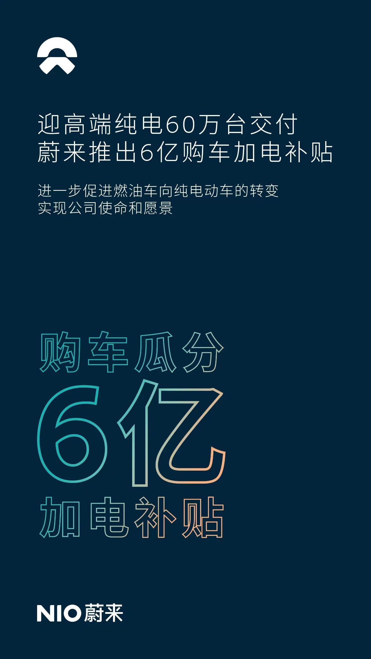 進入10月,更多車企傳來喜訊。10月11日,蔚來品牌高端純電汽車實現全球60萬輛交付,為慶祝這一時刻,蔚來在同日推出了6億元購車加電補貼。